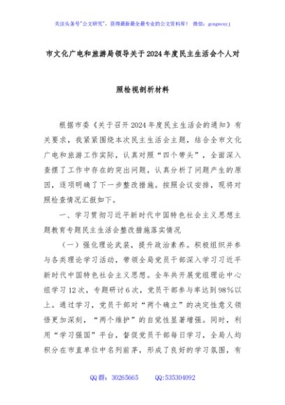 / 市文化广电和旅游局领导关于2024年度民主生活会个人对照检视剖析材料