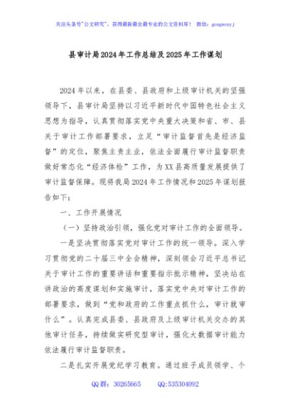 / 县审计局2024年工作总结及2025年工作谋划