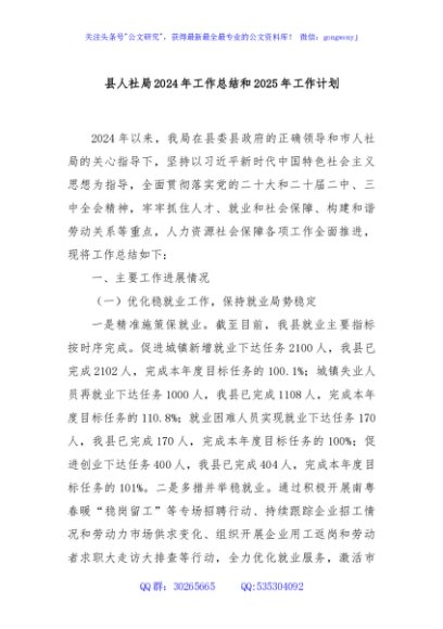 / 县人社局2024年工作总结和2025年工作计划