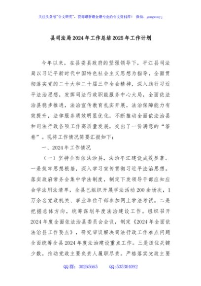 / 县司法局2024年工作总结2025年工作计划