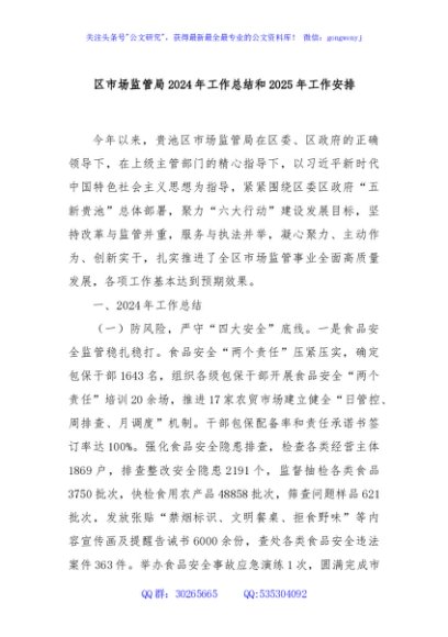 / 区市场监管局2024年工作总结和2025年工作安排