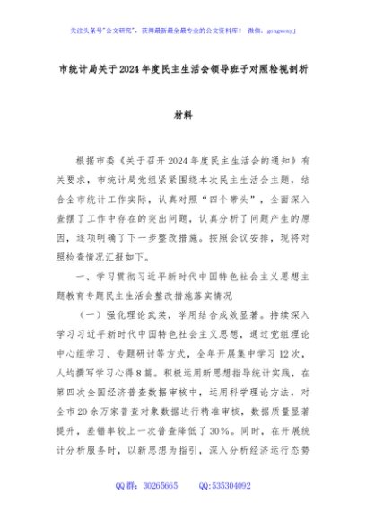 / 市统计局关于2024年度民主生活会领导班子对照检视剖析材料