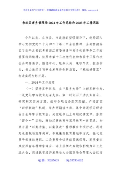 / 市机关事务管理局2024年工作总结和2025年工作思路
