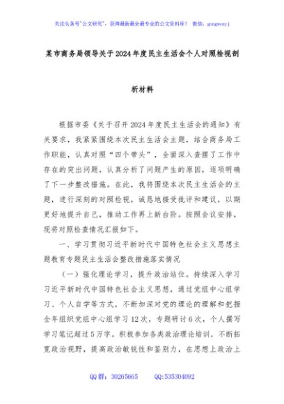 / 某市商务局领导关于2024年度民主生活会个人对照检视剖析材料