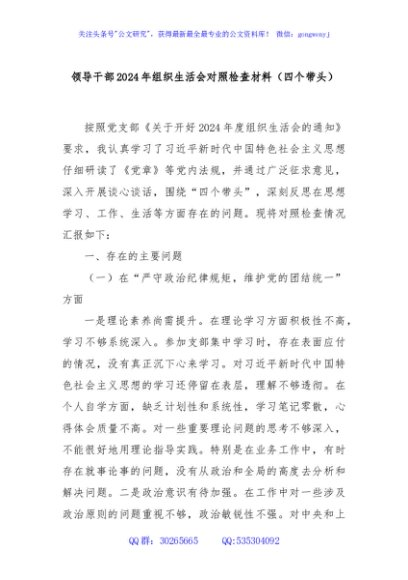 / 领导干部2024年组织生活会对照检查材料(四个带头)