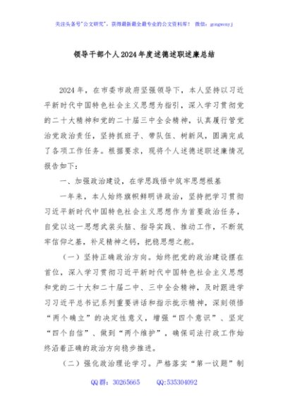 / 领导干部个人2024年度述德述职述廉总结