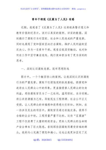 / 青年干部观《反腐为了人民》有感