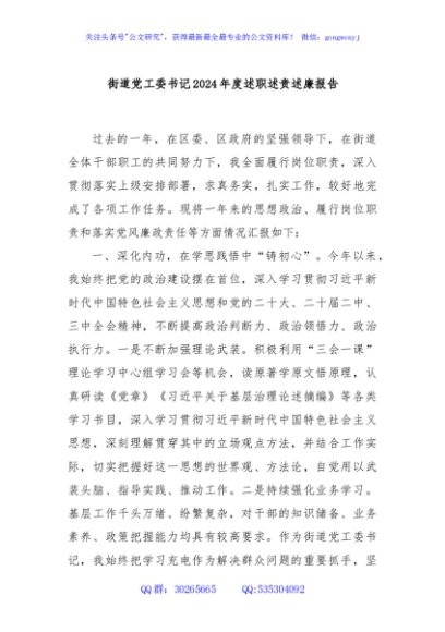 / 街道党工委书记2024年度述职述责述廉报告