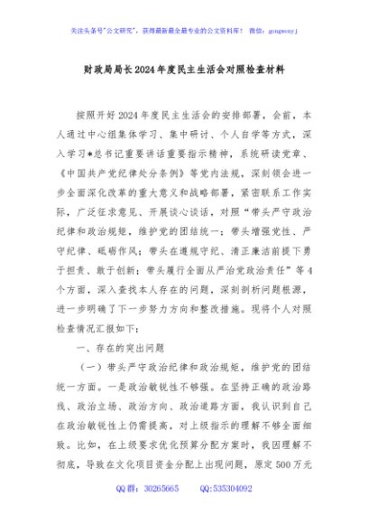 / 财政局局长2024年度民主生活会对照检查材料