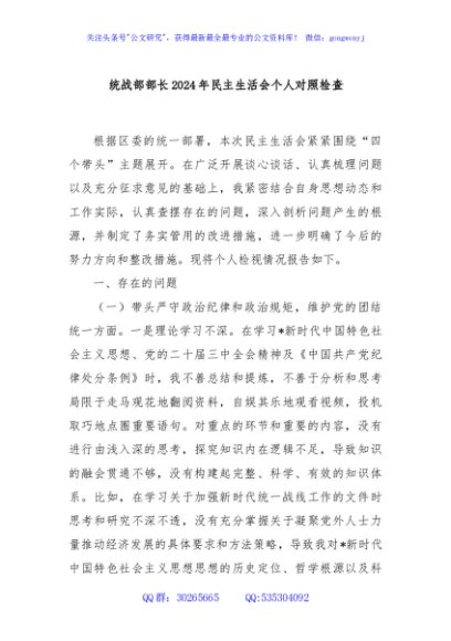 (10篇)县委2025年度民主生活会对照检查材料汇编