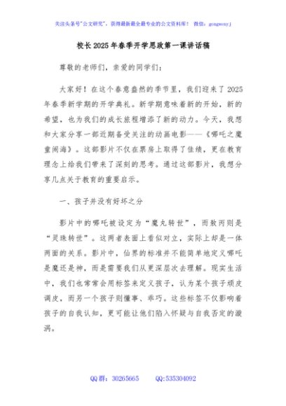 / 校长2025年春季开学思政第一课讲话稿