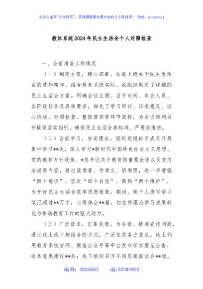 / 教体系统2024年民主生活会个人对照检查