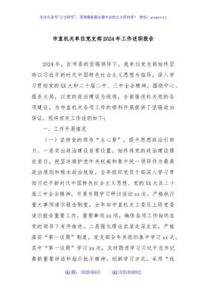 / 市直机关单位党支部2024年工作述职报告