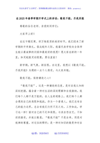 / 在2025年春季学期开学式上的讲话:敬我不能,尽我所能