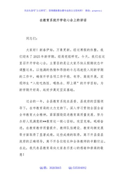 / 在教育系统开学收心会上的讲话