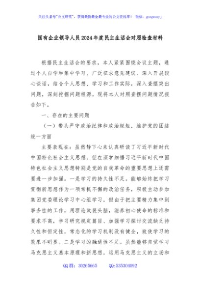 / 国有企业领导人员2024年度民主生活会对照检查材料