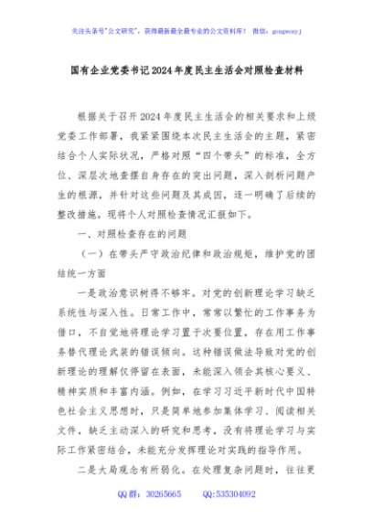 / 国有企业党委书记2024年度民主生活会对照检查材料