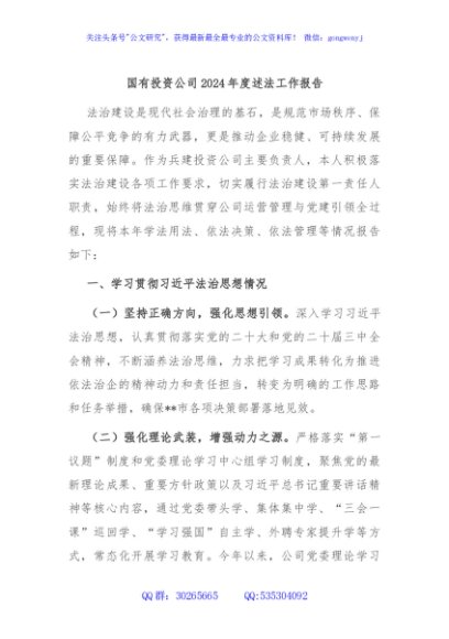 / 国有投资公司2024年度述法工作报告