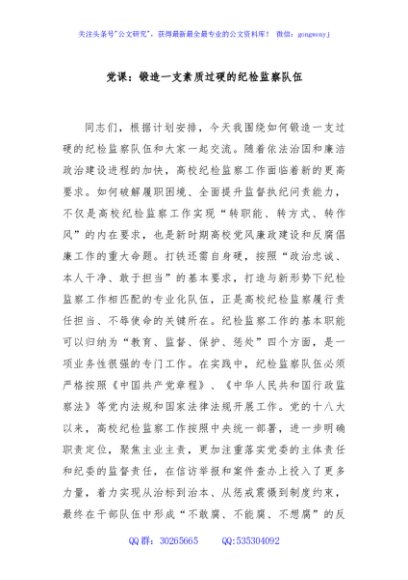 / 党课:锻造一支素质过硬的纪检监察队伍