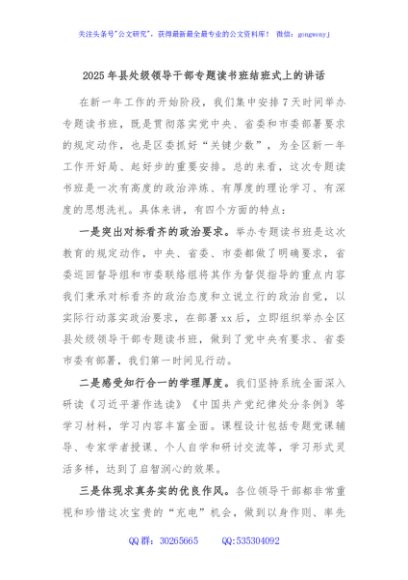 / 2025年县处级领导干部专题读书班结班式上的讲话