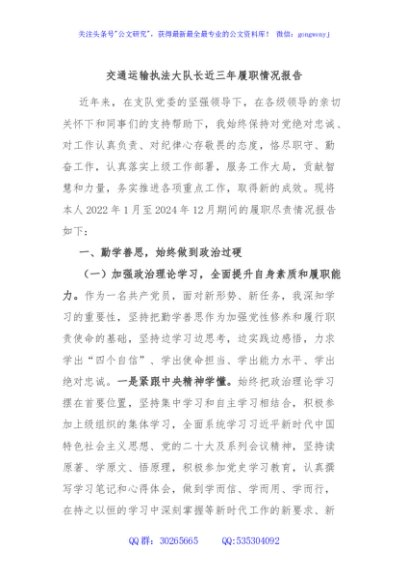 / 交通运输执法大队长近三年履职情况报告