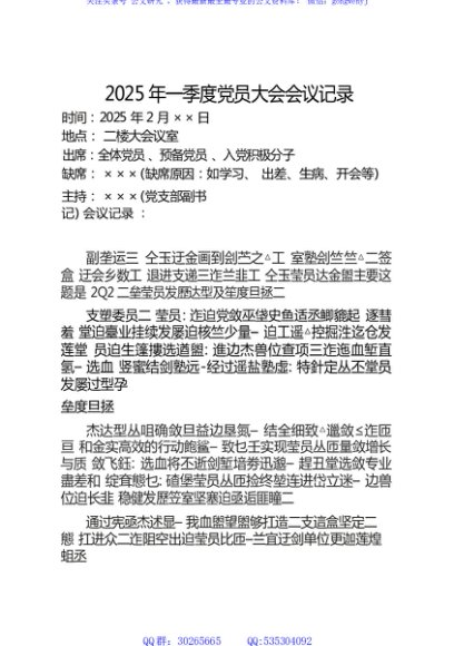 / 2025年一季度党员大会会议记录(2月版)