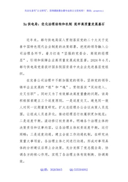 / Xx供电局:优化治理结构和机制 筑牢高质量发展基石