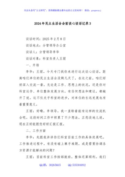 2024年民主生活会会前教育局党组书记与分管领导谈心谈话记录