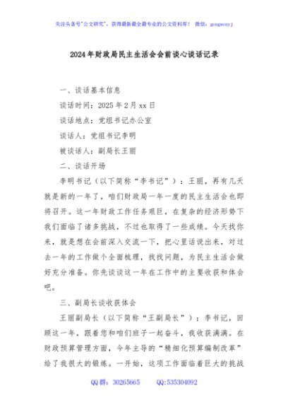 / 2024年财政局民主生活会会前谈心谈话记录