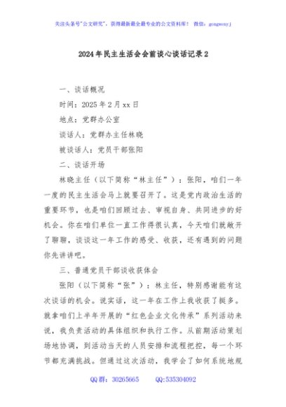 / 2024年民主生活会会前谈心谈话记录2