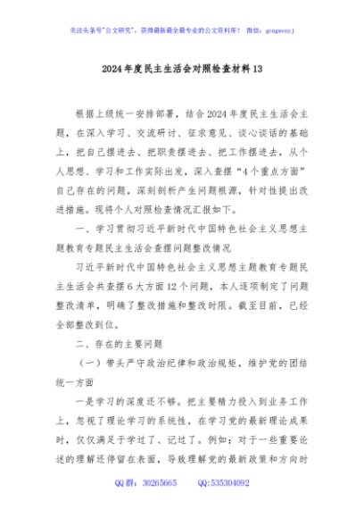 (10篇)县委2025年度民主生活会对照检查材料汇编