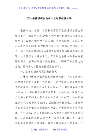 / 2024年度组织生活会个人对照检查材料