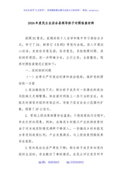 (10篇)县委2025年度民主生活会对照检查材料汇编