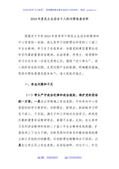 (10篇)县委2025年度民主生活会对照检查材料汇编