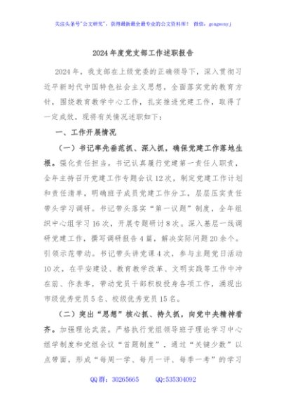 / 2024年度党支部工作述职报告