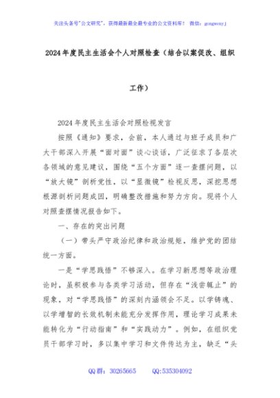 / 2024年度民主生活会个人对照检查(结合以案促改、组织工作)