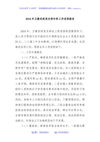 / 2024年卫健系统党支部年终工作述职报告