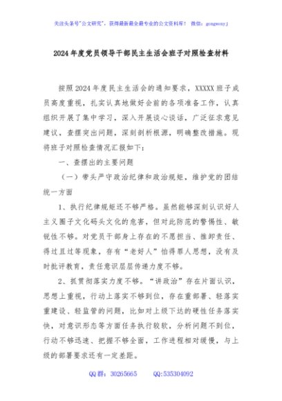 / 2024年度党员领导干部民主生活会班子对照检查材料