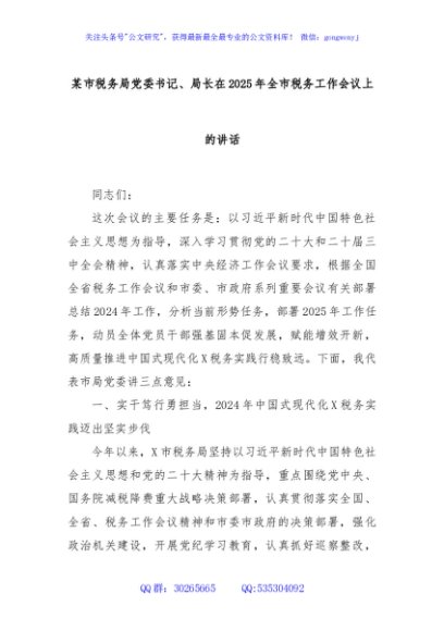 / 某市税务局党委书记、局长在2025年全市税务工作会议上的讲话