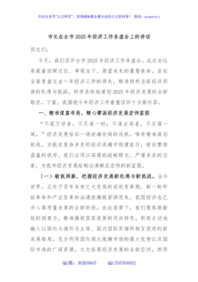 / 市长在全市2025年经济工作务虚会上的讲话