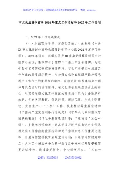 / 市文化旅游体育局2024年重点工作总结和2025年工作计划