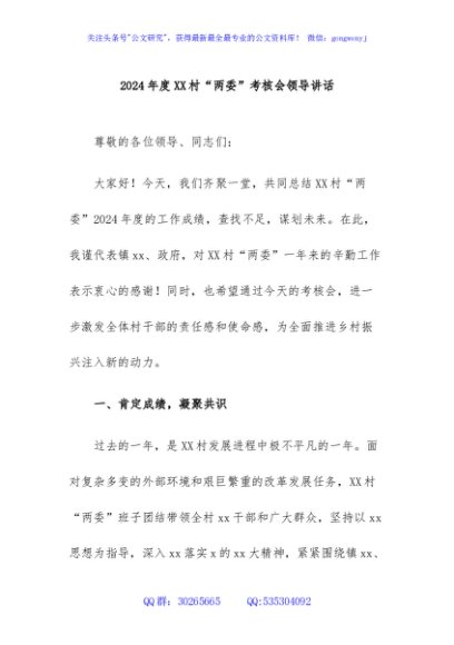 / 2024年度XX村“两委”考核会领导讲话