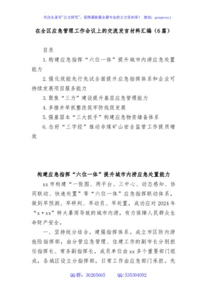 (6篇)在全区应急管理工作会议上的交流发言材料汇编