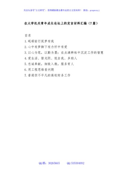/ (7篇)在大学机关青年成长论坛上的发言材料汇编