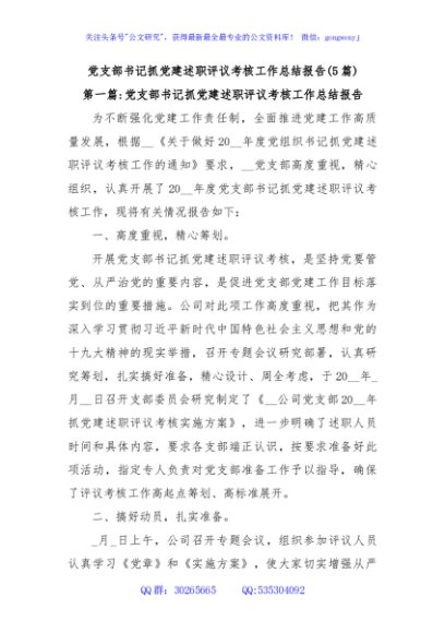/ (5篇)党支部书记抓党建述职评议考核工作总结报告