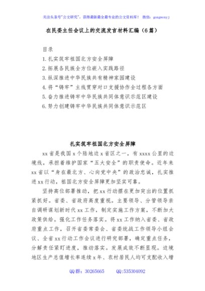 / (6篇)在民委主任会议上的交流发言材料汇编