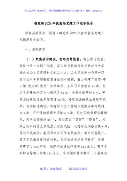 / 镇党委2024年抓基层党建工作述职报告