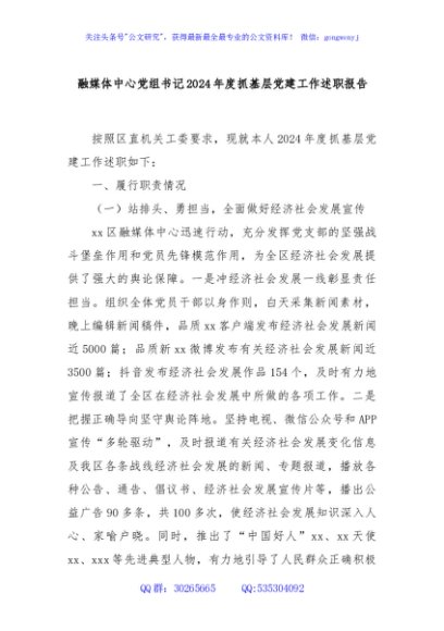 / 融媒体中心党组书记2024年度抓基层党建工作述职报告