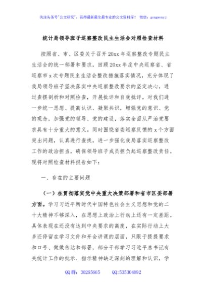 / 统计局领导班子巡察整改民主生活会对照检查材料