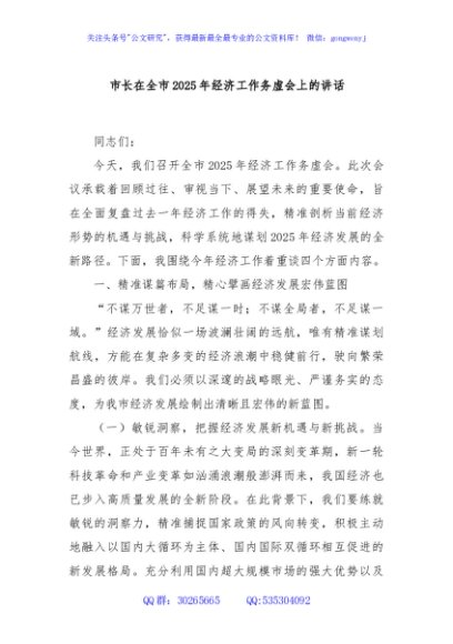 / 市长在全市2025年经济工作务虚会上的讲话